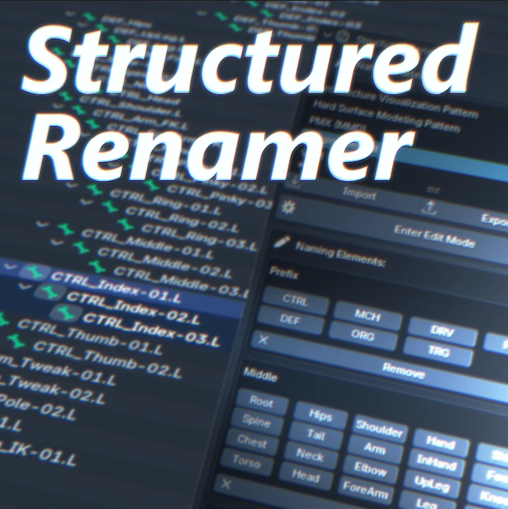 Structured Renamer is a tool for building names by rearranging semantically separated name parts rather than relying on traditional search-and-replace methods. This system is particularly geared toward technical 3D projects and rigging, where consistent naming conventions are critical.