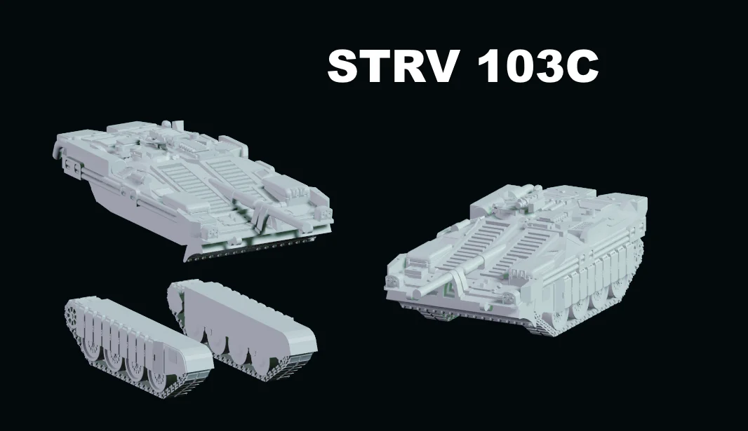 This product provides a 3D printable model of the Strv 103 C, also known as the S-Tank. The geometry is scaled to 1/100, which aligns with 15mm tabletop gaming standards. The package includes both presupported and unsupported files, accommodating workflows for both resin and FDM 3D printers. While the model can be scaled up, the creator advises against scaling below 50 percent to avoid issues with thin geometry during printing.