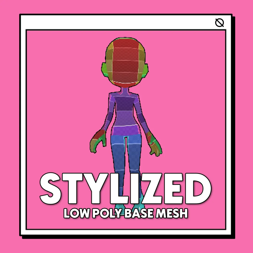 This is a low-polygon stylized character base mesh designed as a starting point for 3D modeling projects. The model consists of approximately 2,000 triangles and features clean topology structured for rigging and animation. It includes a UV unwrap specifically tailored for low-resolution 256x256 pixel textures, utilizing straightened UV islands to support pixel-perfect texture painting.