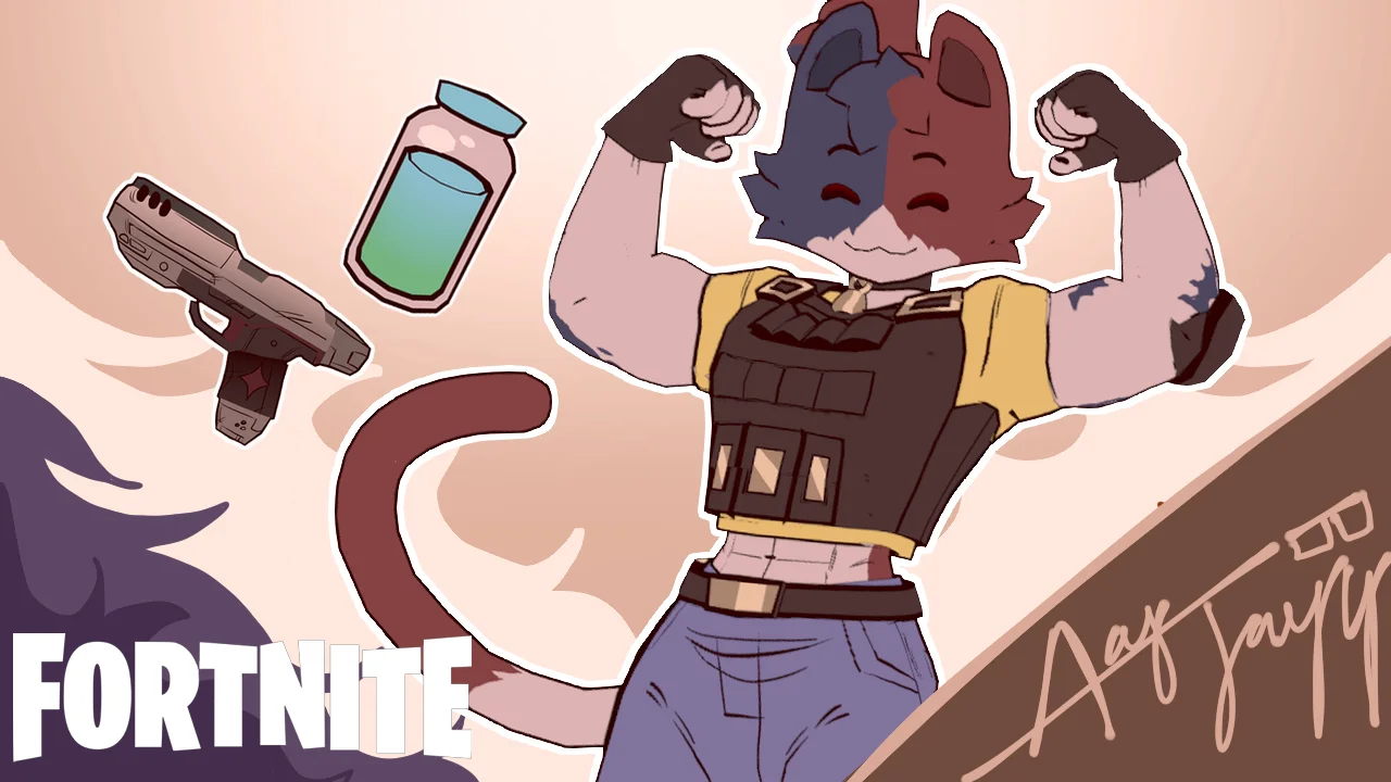 This stylized 3D character model is provided in .blend and .fbx formats, based on an original design by rickeito. The model features a set of shapekeys for facial animation, supporting happy, mad, sad, shock, and stare expressions, alongside configured visemes for VRChat implementation. The package also includes two accessory props: a Hyperburst Pistol and a Slurp Juice item.