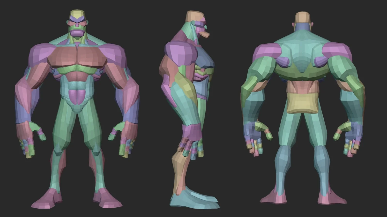 A stylized anatomy blockout model designed to serve as a base mesh for character creation projects. The model is separated into distinct anatomical parts, including the head, torso, arm, hand, leg, and feet. It is provided in multiple 3D file formats, including a native Blender file, to integrate into various sculpting and modeling workflows.