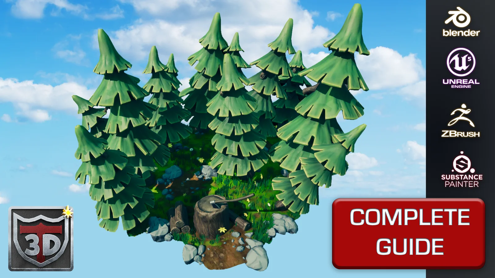 This product provides a complete stylized woodland scene as a packed Blend file, originally created as part of a video tutorial. The download is split into two Blend files: one containing the main tree, a log, and an axe, while the second contains the flowers and grass foliage. All models are fully textured and feature custom node trees. The assets are cleanly organized into named collections. The pack also includes dedicated texture maps optimized for both Blender and Unreal Engine 5, including specific maps for bark, foliage, and broken branch alphas.