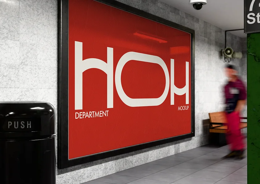 A collection of 3D subway poster mockup scenes built entirely in Blender. The series includes eight high-resolution setups featuring realistic lighting and urban environments. It is designed for presenting branding, advertising campaigns, and graphic design projects in a simulated public space.
