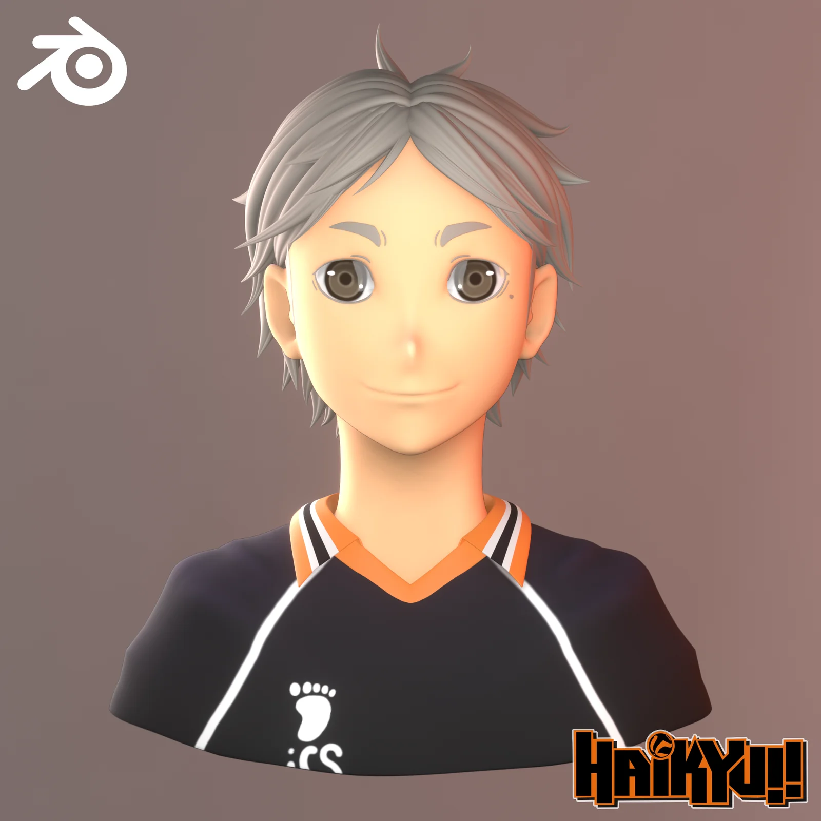A 3D character model of Koushi Sugawara from the anime series Haikyuu. The model was created using Dyntopo sculpting and Blender's quad remesher. It is provided as a static sculpt and does not include animation-ready retopology.