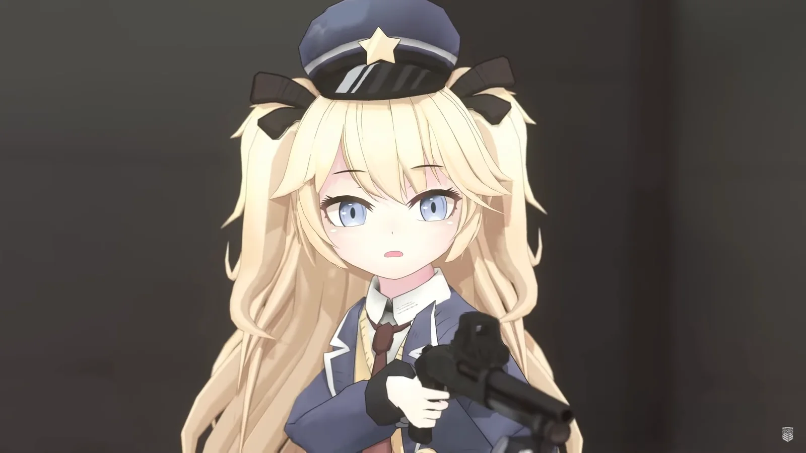 A rigged and textured fan-made 3D model of the Super-Shorty character from Girls' Frontline. The model includes an IK/FK switch for limbs and spine, isolated rotation toggles, and face shape key expressions controlled via bones. It also features hair bones intended for use with the Wiggle Bone addon. The geometry consists of approximately 30,000 vertices and 59,000 triangles when the outline solidify modifier is active. This model is not game-ready and lacks full UV mapped textures for export, armor plates, and a gun prop.