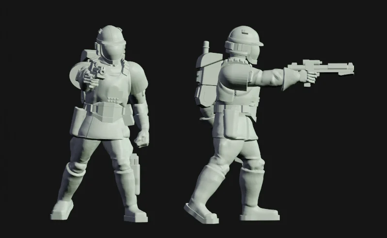 This is a single 3D printable bounty hunter figure provided with pre-supported files. The model is nominally scaled at 1/48, measuring approximately 38 millimeters from toe to head. It is designed primarily for resin 3D printers, though it can be scaled within a slicer for larger prints.