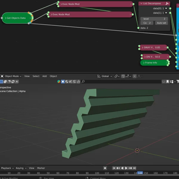 This project provides a demonstration of origami-style concertina folding mechanics in Blender. The procedural setup is built using the Sverchok add-on to drive the geometry and folding animations. It is offered as a raw example file for users to study the node structure, without accompanying tutorials or documentation.