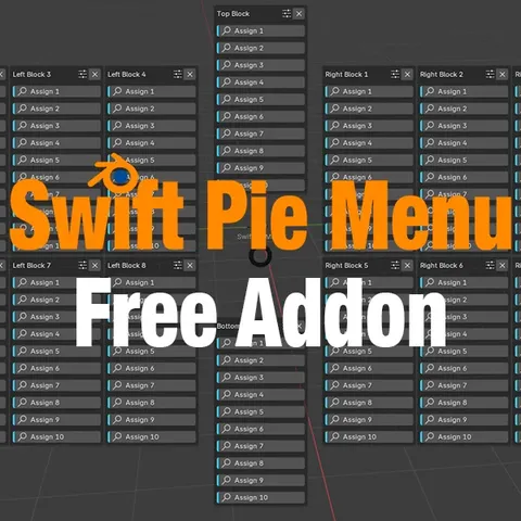 Swift Pie Menu is an addon framework that allows users to build custom pie menus, pop-up panels, and traditional vertical menus within Blender without writing Python code. The tool uses a block-based grid system where users can configure multiple individual blocks per menu, linking buttons to native operators, animatable properties, external Python scripts, or chained sub-menus. The integrated visual editor provides an environment for constructing complex interface elements, including collapsible blocks, tabbed sections, and precise layout alignments. These custom interfaces can be deployed as temporary pop-up windows or docked persistently in the 3D Viewport sidebar to centralize access to frequently used tools and optimize complex workflows.