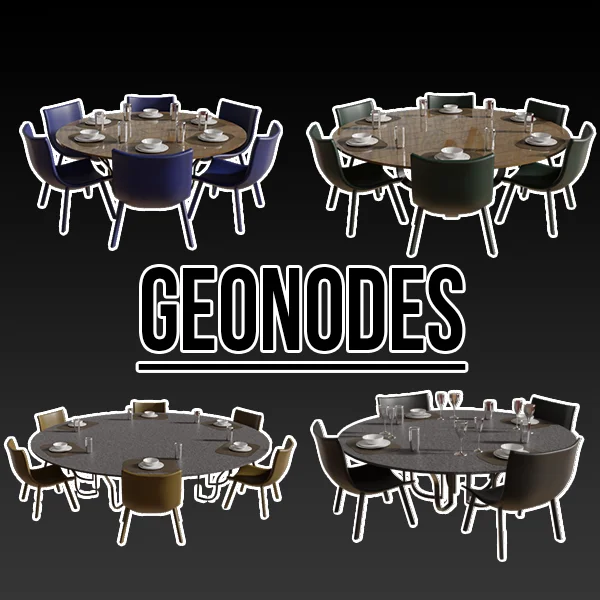 Table 002 Generator is a Geometry Nodes setup for creating parametric table models. Users can adjust various properties including the table's overall dimensions, shape, and leg placement. The tool includes controls for the tabletop design and edge profiling, such as bevels and rounded edges. Options for configuring materials and adding accessories are also provided, making it suitable for architectural visualization and interior design.
