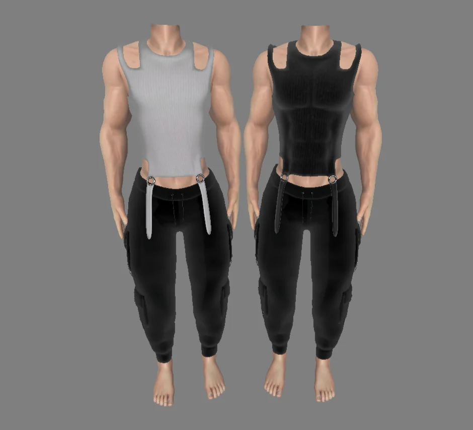 A set of tank top clothing models created in Blender. The package includes two FBX files and an accompanying folder of texture assets. A video guide demonstrating how to attach the clothing to a character model is also provided. Note that the character body and pants are not included.
