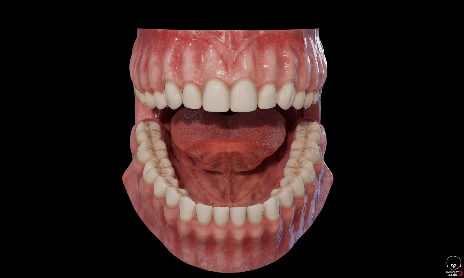 This 3D model provides an anatomically precise representation of human teeth and major dental structures. The asset includes triangulated meshes featuring upper gums welded to the teeth, and lower gums with two tongue positions. A dedicated saliva blend mesh is also provided to add detail to mouth interiors. The model is supplied in FBX format along with a single 4K texture set.