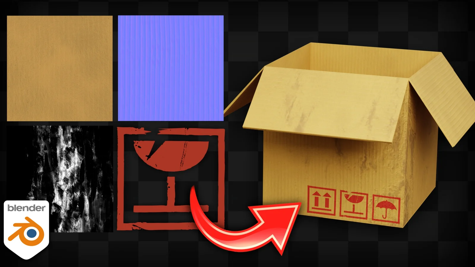 This package contains the project files designed to accompany a tutorial on texturing with multiple UV maps in Blender. The download includes both the startup and finished Blender files, allowing users to follow along with the exercise or examine the completed node setups. The set also provides the required image assets, including cardboard, grunge, and box icon textures.