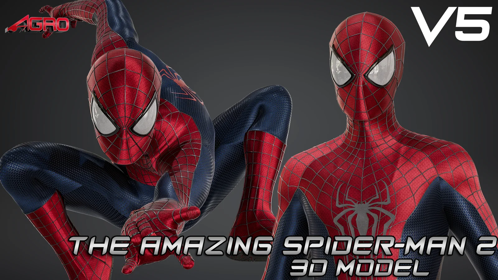 This is a high-resolution, rigged 3D character model modeled after Andrew Garfield's Spider-Man. The asset features an inverse kinematics (IK) rigging setup, accurate sewing patterns, and detailed material maps including wrinkle maps. It contains approximately 354,000 polygons and 193,000 vertices, and is provided in both .blend and .fbx formats. The character is set up to support surface deform operations in Blender.