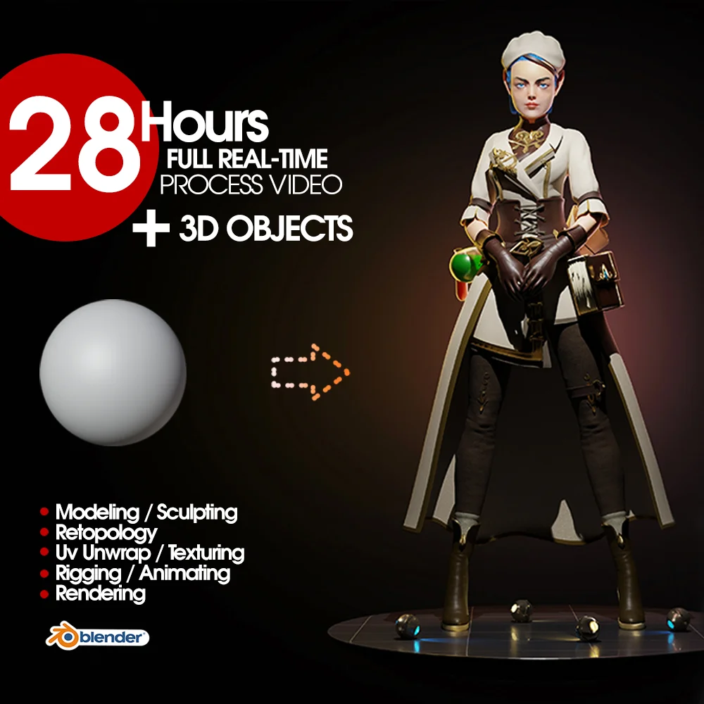 This product provides a complete 28-hour real-time video demonstrating the creation of a 3D character known as The Botanist in Blender. The raw video footage covers the entire workflow from start to finish without any voiceover or commentary. Additionally, the final 3D character files are included in multiple formats to accompany the video.