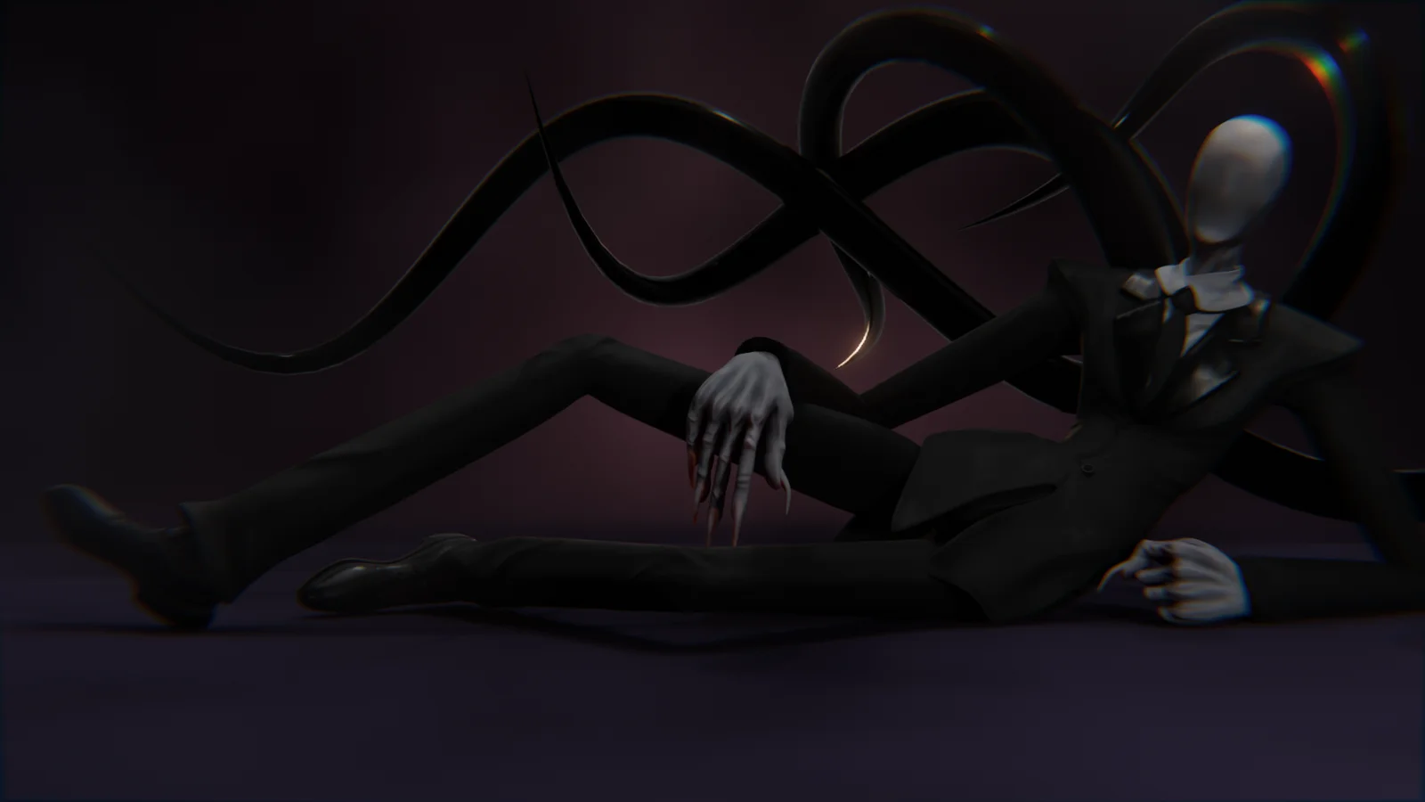 This is a rigged 3D character model of Slenderman, inspired by the original Something Awful forum posts and the video game Slender: The Arrival. The asset is built using a high-poly to low-poly modeling workflow and includes a complete set of 4K resolution PBR textures. The provided texture maps include base color, metallic, roughness, and normal.