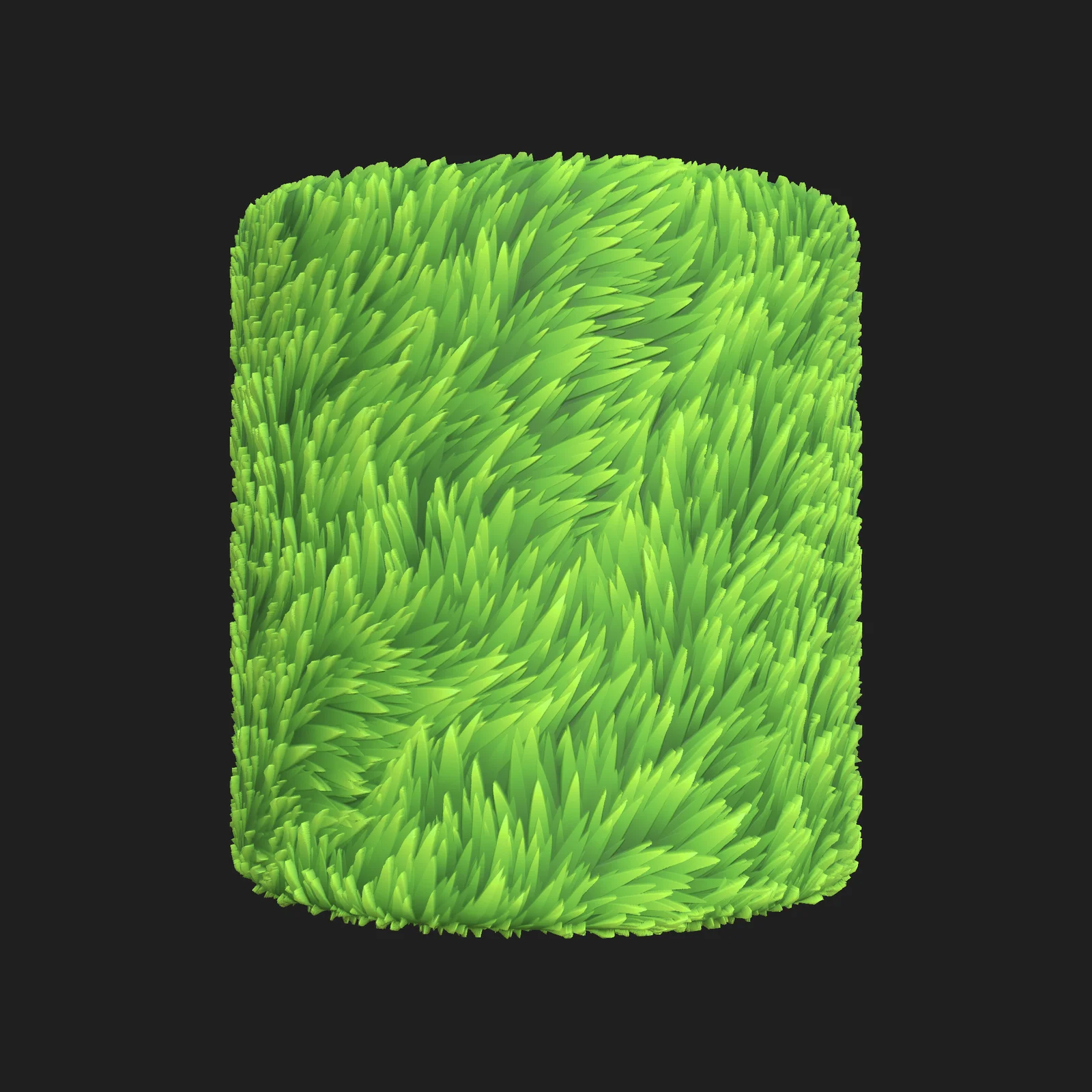 This stylized thick grass material provides a dense greenery surface for landscape environments. The material includes a set of 2K resolution physically based rendering maps, featuring ambient occlusion, base color, height, metallic, normal, and roughness images. A Substance Designer source file (.sbs) is also included, allowing users to inspect or modify the underlying node graph.