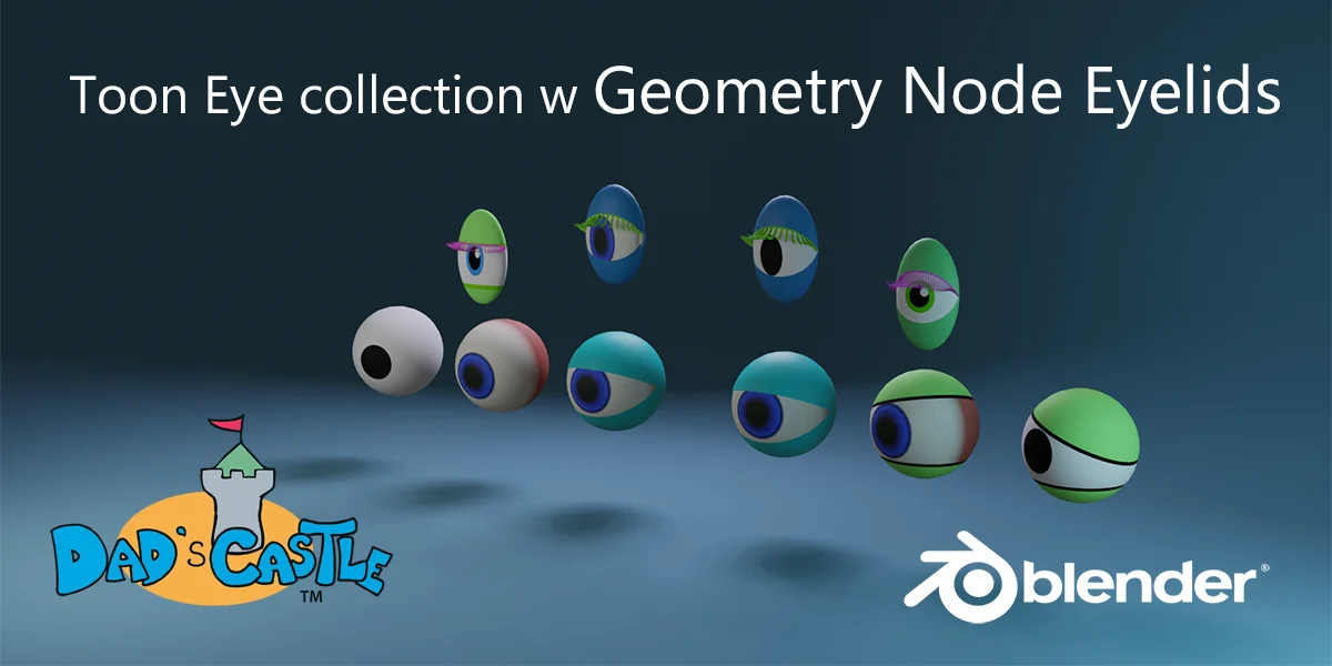 This collection provides a set of stylized, rig-ready cartoon eyes, complete with procedural eyelids and eyelashes. Users can choose between geometry node-based setups or purely procedural shader variations. The eyes are designed to be scalable without the need for lattices or shape keys, and feature customizable pupil controls and eyelid colors.