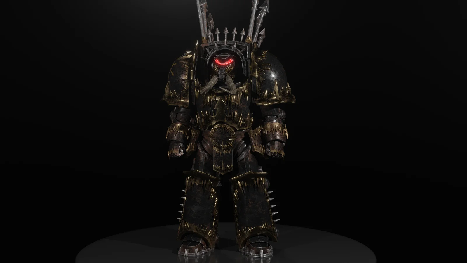 The Traitor Legionary T-Heavy Armor is a rigged 3D character model compatible with Blender 4.0 and later. The asset consists of 122,000 triangles and features fully unwrapped UVs, allowing for custom retexturing workflows. The provided uncompressed texture files total 262 megabytes in size.