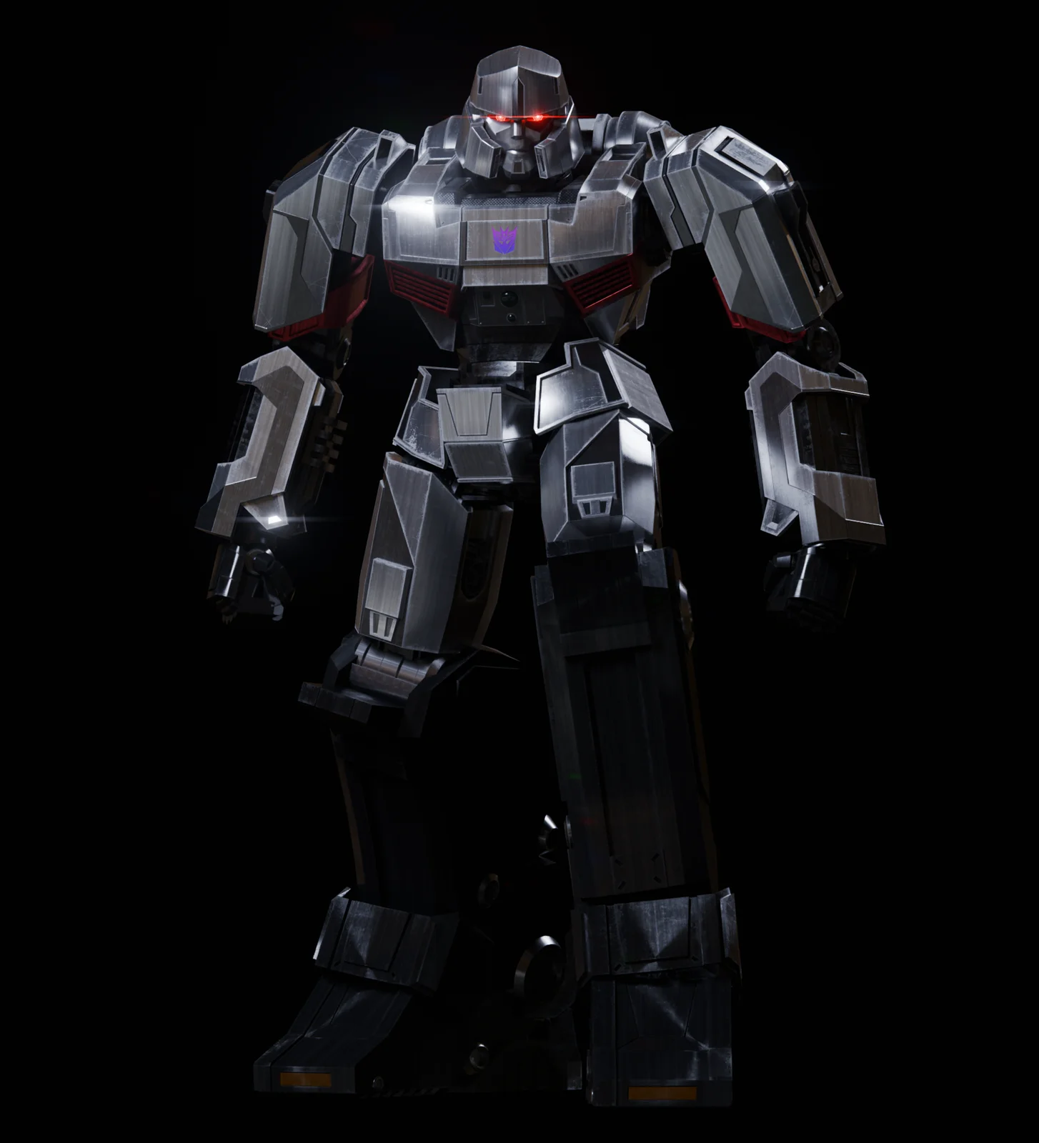 This is a rigged and textured 3D character model of Megatron from Transformers: One. The asset includes custom animated controllers specifically built for the arm cannon transformations, allowing for straightforward integration into animation workflows. The model comes complete with fully animated blasters and the transformation cog.