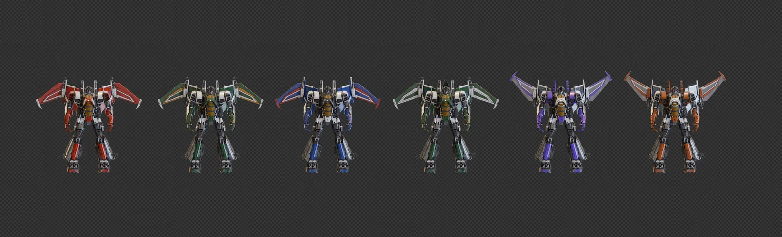 This collection includes rigged 3D models of six Seekers, inspired by their appearance at the beginning of the Bumblebee movie. The characters were modeled entirely in Blender with clean topology, allowing for modification of the internal kit parts. The models feature a complete rigging setup built with Blender's armature system and come with materials authored in Substance 3D Painter. The package provides the native Blend file with all materials packed, alongside exported FBX and OBJ formats for use in other 3D applications.