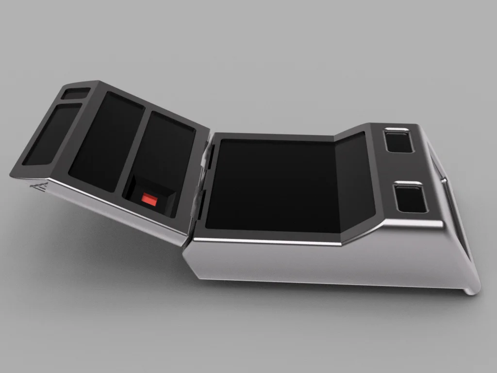 A set of 3D models for printing a Mark X Tricorder prop. The files include a standard version, a hollow variant designed to accommodate custom electronics, and an accompanying medical scanner. Science decals are also provided to complete the prop's appearance. Assembly requires standard 19mm brass hinges.