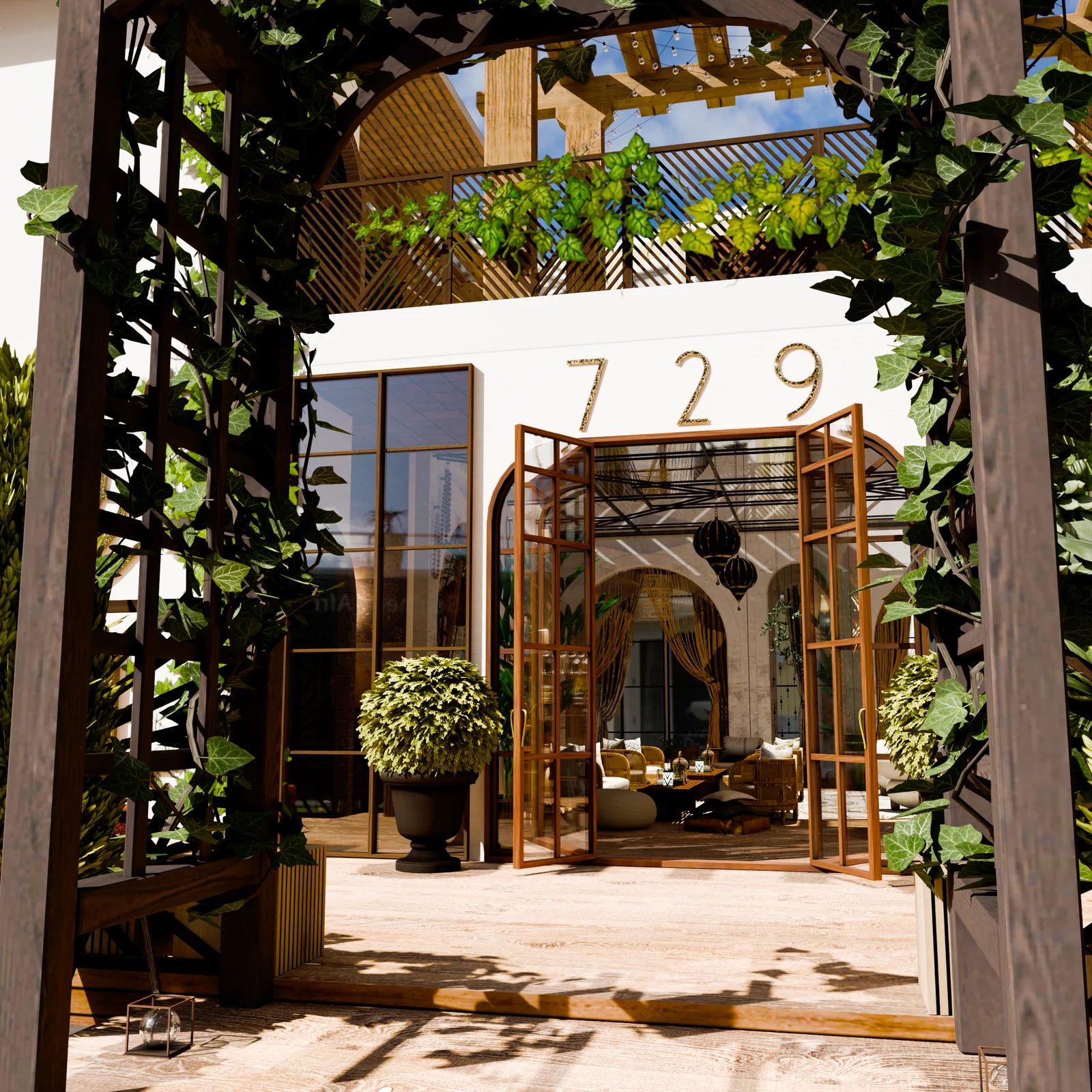 Ts'ai Tea House is a pre-built 3D environment designed for Blender. The scene features decor inspired by the arid desert region of the fictional African nation of Onis. It is configured for rendering with the Cycles engine.
