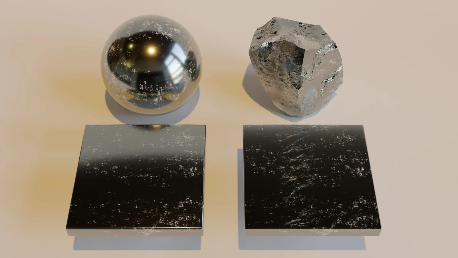 This shader provides a procedural chromium metal material. The included .blend file contains three material variations: one version without displacement and two versions featuring displacement effects. While the material is compatible with the EEVEE render engine, it is designed primarily for use with Cycles.