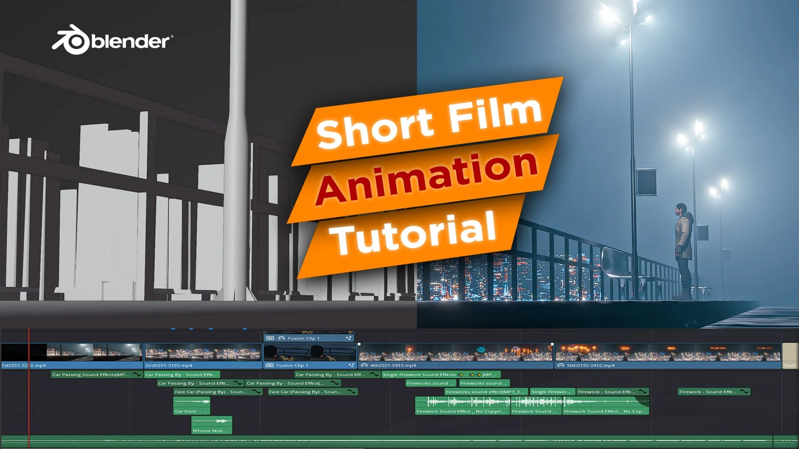 This is the source file from a YouTube tutorial celebrating a subscriber milestone. The provided project file contains a complete 3D animation setup configured for realistic rendering. It includes a rigged human character alongside buildings generated procedurally using Geometry Nodes. All necessary textures are packed within the file, allowing users to explore the scene organization, study the animation process, and adapt the node setups for their own projects.
