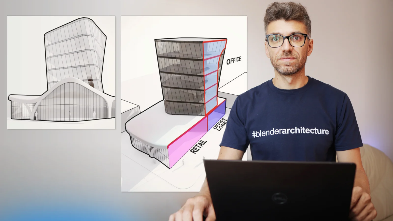 An intermediate training course focused on architectural design and modeling workflows in Blender. The curriculum follows the creation of a twisting tower situated on a retail podium, taking the project from initial concepts to 3D geometry. Students learn to optimize project settings, configure custom user interfaces for view referencing, and utilize the annotation tool for 3D sketching directly within the viewport. The modeling sections emphasize subdivision surface techniques, demonstrating how to use low-poly cages with edge loops and creases to generate curved architectural forms. Additional topics include generating modular road intersections, setting up scene context, and modeling accurately to real-world scale.