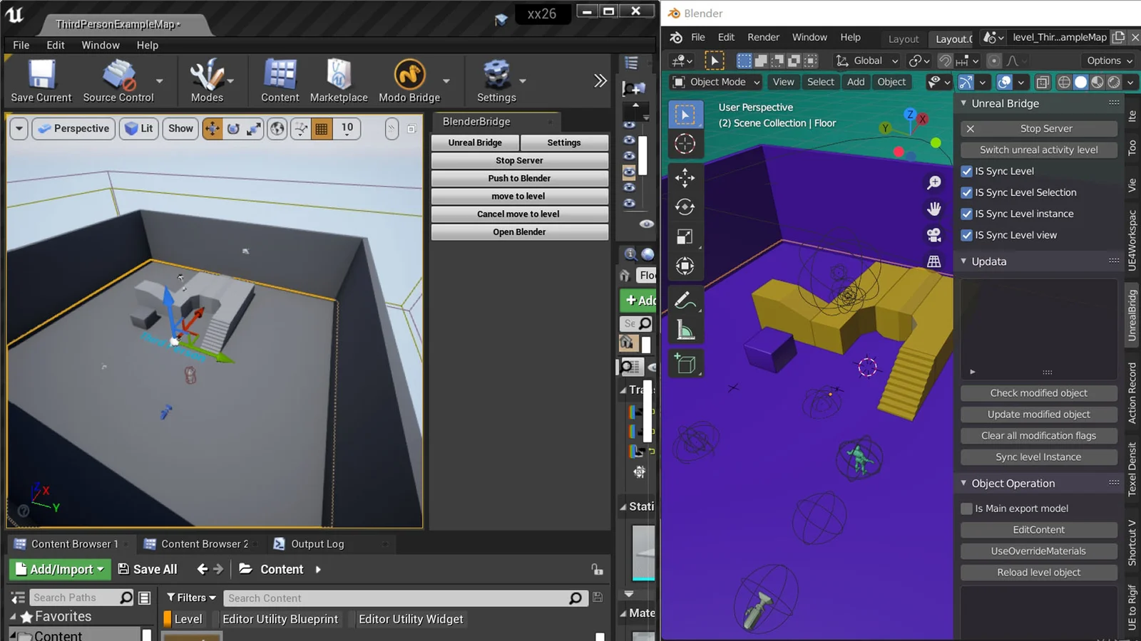 UEBridge is a workflow tool that transfers assets between Unreal Engine 5, Blender, Substance 3D Painter, and Photoshop without manual import and export steps. It supports sending and receiving static meshes, skeletal meshes, skeletal animations, textures, level sequences, and geometry caches.