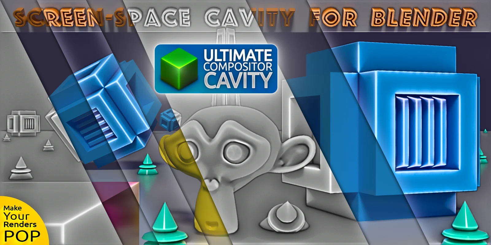 Ultimate Compositor Cavity is a compositor node group that generates screen-space cavity passes for EEVEE and Cycles renders. It adds angular ridge and valley highlighting similar to the cavity feature found in Blender's solid viewport mode. The node setup includes three primary controls to adjust the style of the cavity effect, allowing for thin ridges, contrast enhancement, depth emphasis, or ambient-occlusion style shading.