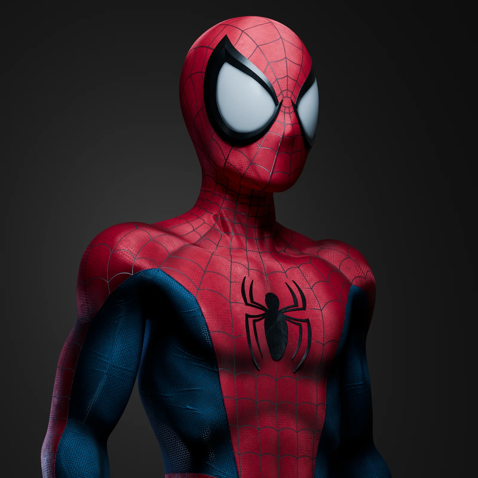 This is a 3D character model of Ultimate Spider-Man provided as a native Blender file. The model is fully rigged with both Forward Kinematics (FK) and Inverse Kinematics (IK) controls for animation. It features a geometry density of 79,000 total faces and includes 4K resolution textures, supplemented by an 8K normal map.