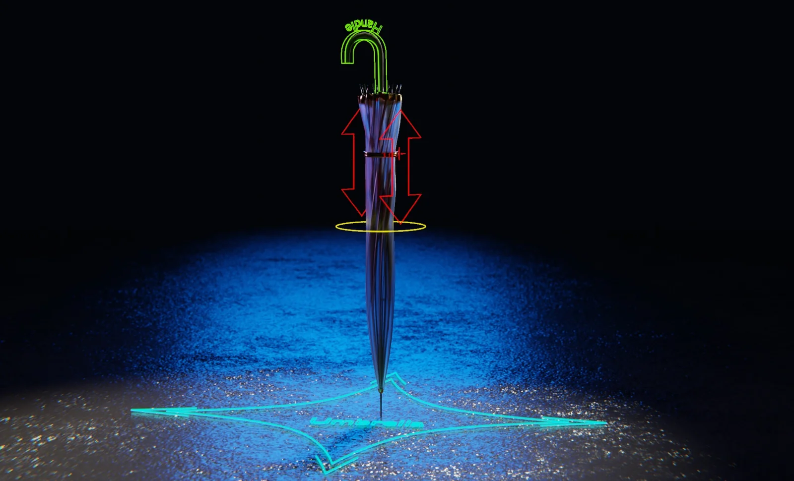 A rigged 3D model of an umbrella designed for personal practice and educational use. The file includes a custom user interface script that provides dedicated controls when executed in the Scripting tab. The model is organized into a specific collection for appending into other Blender projects.