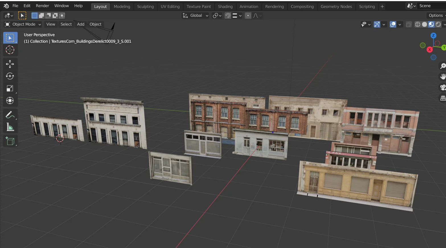 This product provides building and store assets designed for constructing urban environments. The models are supplied in a native .blend file for immediate use in Blender scenes.