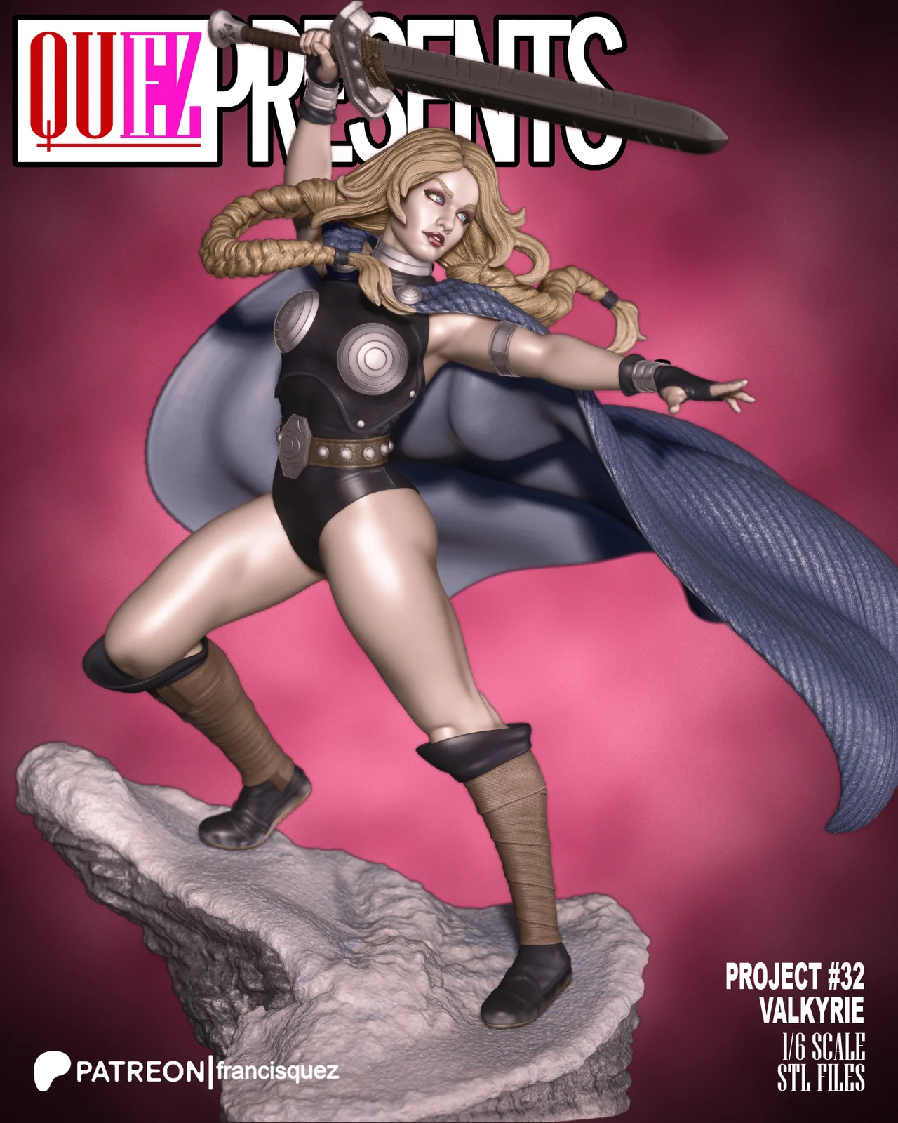 This product provides a 3D model of a Valkyrie character designed specifically for 3D printing. The sculpt is scaled at 1/6, with a default height of 400 millimeters. It is delivered in STL format, ready to be imported into slicing software for physical production.