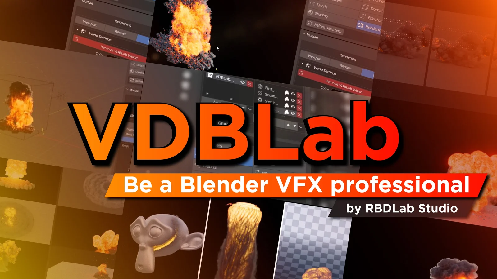 VDBLab is an explosion creation toolkit that manages volume simulations in Blender through a modular workflow. The addon is divided into dedicated sections for emitters, flow, forces, domain settings, and shading. Users can generate non-destructive emitter shapes, adjust flow parameters for fire and smoke, and apply forces to influence the simulation behavior.