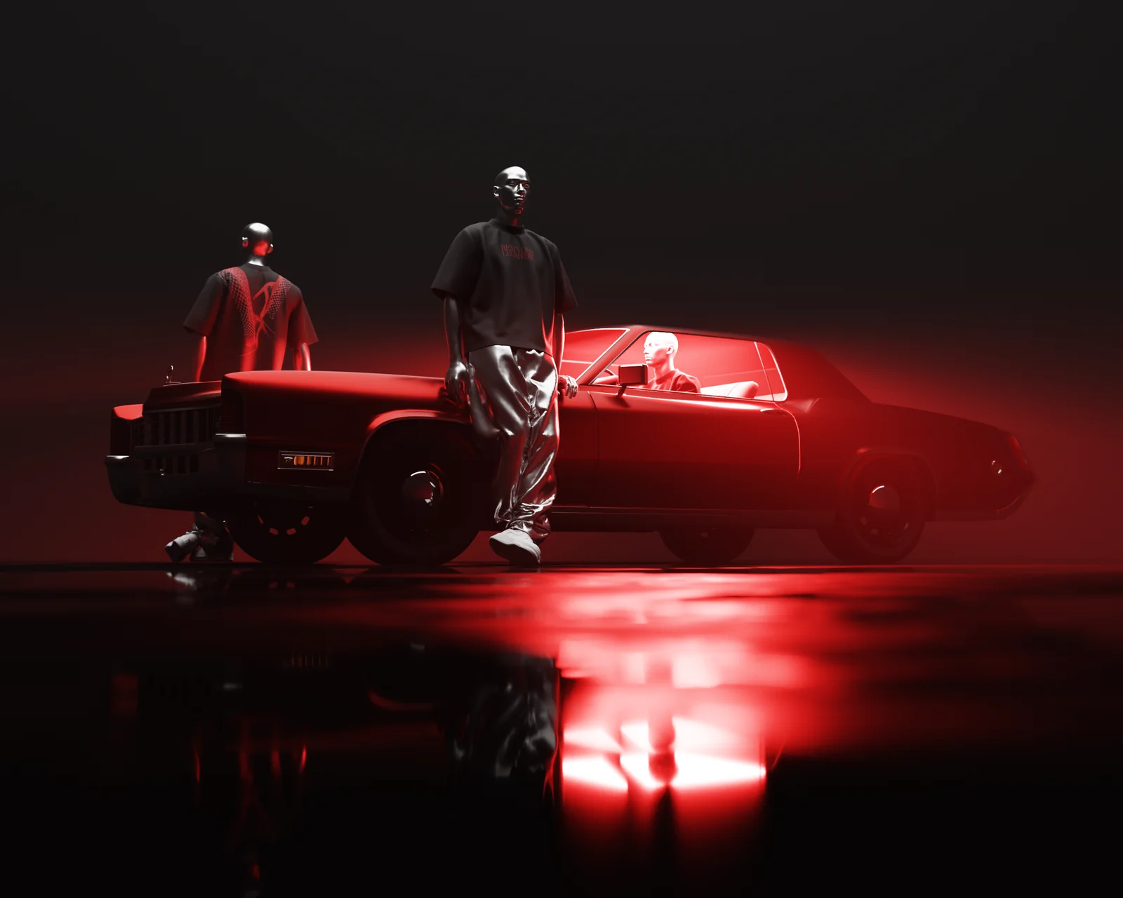 A pre-configured Blender scene featuring a 3D t-shirt mockup and a vintage car. The file is set up for rendering social media animations, allowing users to swap the image textures with their own custom apparel designs and render directly.