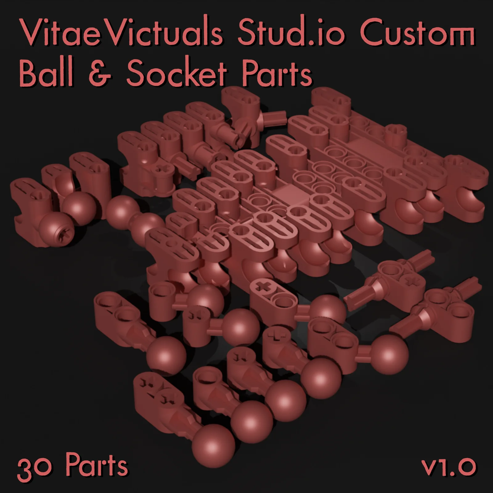 A collection of 30 custom 3D models designed to match the aesthetic of modern LEGO ball and socket components. The parts were originally modeled using Plasticity and processed in Blender. They are provided in both Stud.io and OBJ file formats for use in kitbashing and mechanical designs.