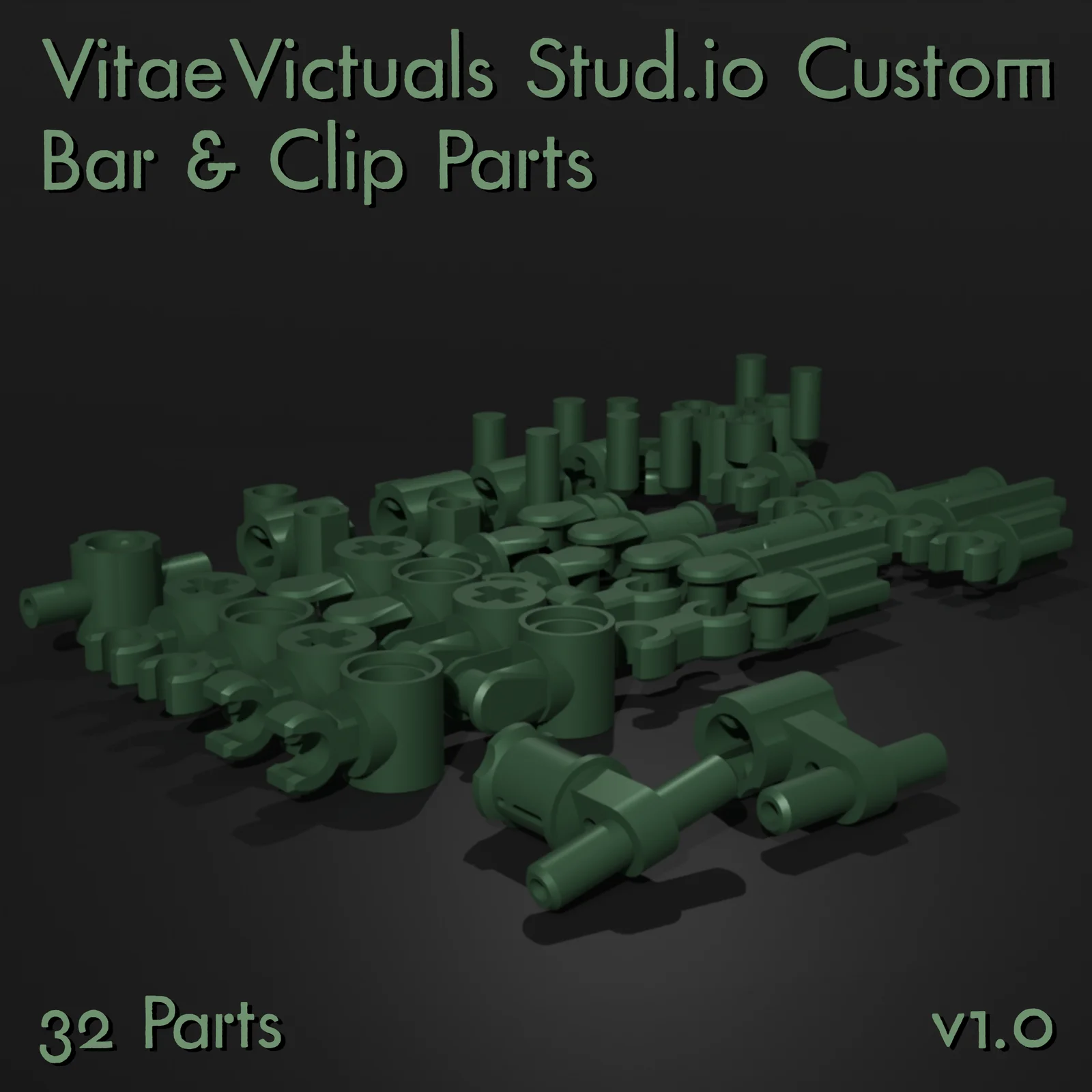 A collection of 32 custom 3D models designed to visually match Lego Technic components. The pack includes a variety of bespoke bar and clip connectors for mechanical assemblies. The assets are provided in both Stud.io and OBJ formats, allowing them to be imported into Blender or used directly in digital Lego building software.