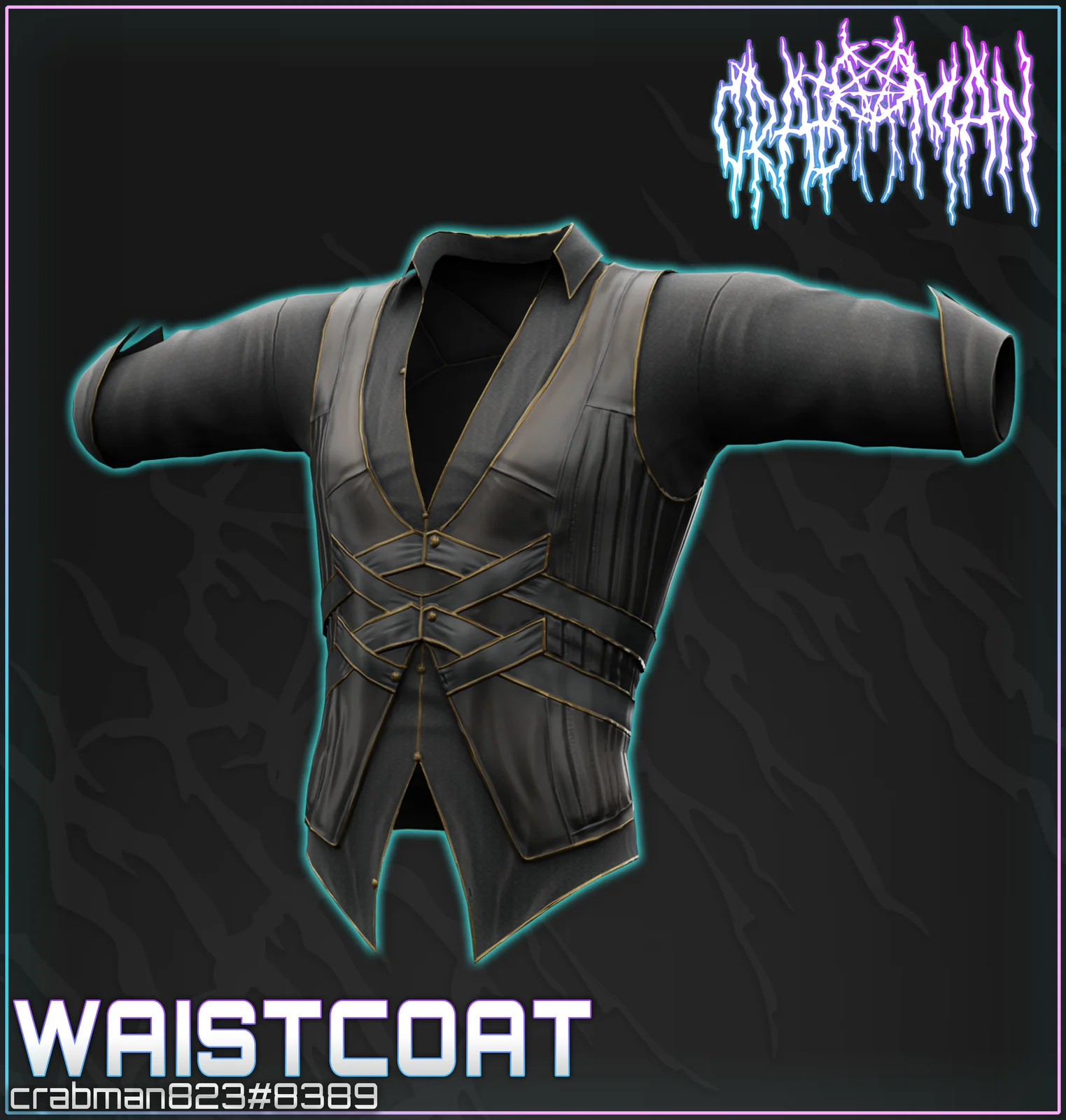 This is an unrigged 3D model of a waistcoat provided in FBX format. The asset consists of 6,048 polygons and uses a single material. It includes standard PBR textures as well as specific texture exports formatted for Poiyomi shaders.