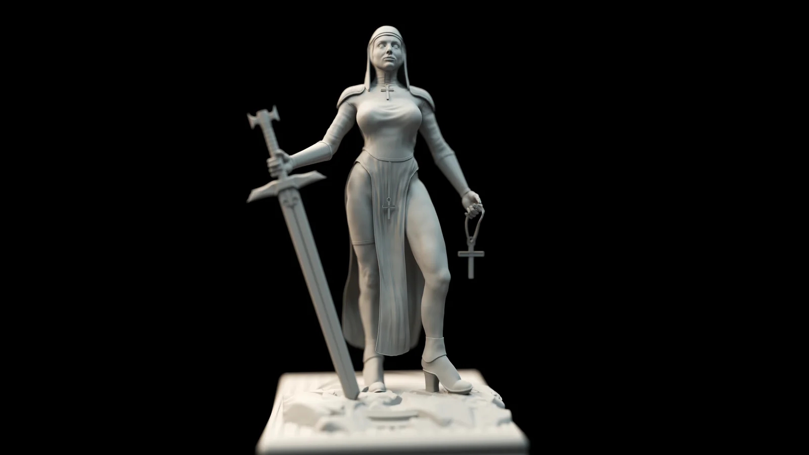A collection of warrior nun 3D models designed specifically for 3D printing. The set includes a squad of character models intended for physical reproduction.
