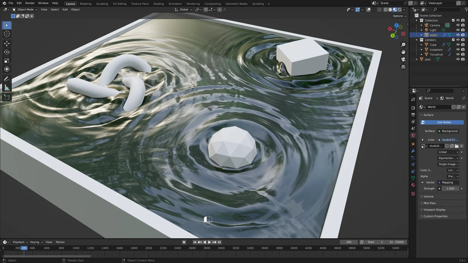 A Geometry Nodes setup designed to simulate 2D water ripples within Blender. This node tree provides a method for generating dynamic ripple effects on flat surfaces.