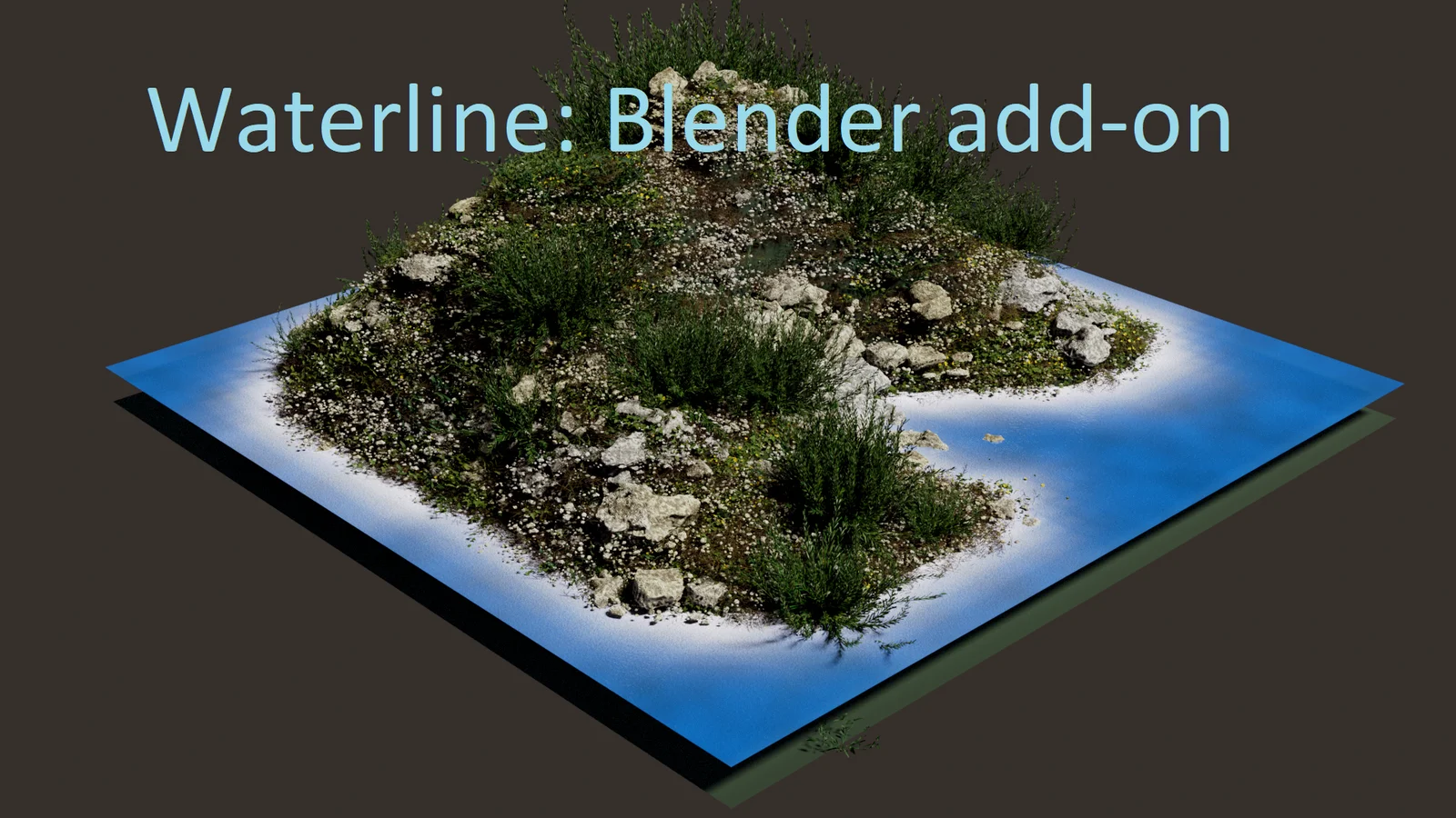 Waterline is an add-on that automates the creation of water foam around land objects intersecting a water plane. It works by generating vertex colors at the intersection points, which are then utilized by a procedural shader node setup to render the foam and water. The tool includes controls for foam dispersion, offering linear and exponential falloff options, customizable falloff factors per face, and adjustable outward reach before the falloff begins.