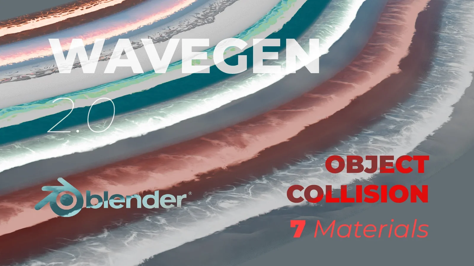 Wavegen is a geometry nodes modifier that generates waves along drawn curves. The system allows users to draw a curve and automatically generate wave forms. It includes real-time procedural object collision for interaction with other scene elements.