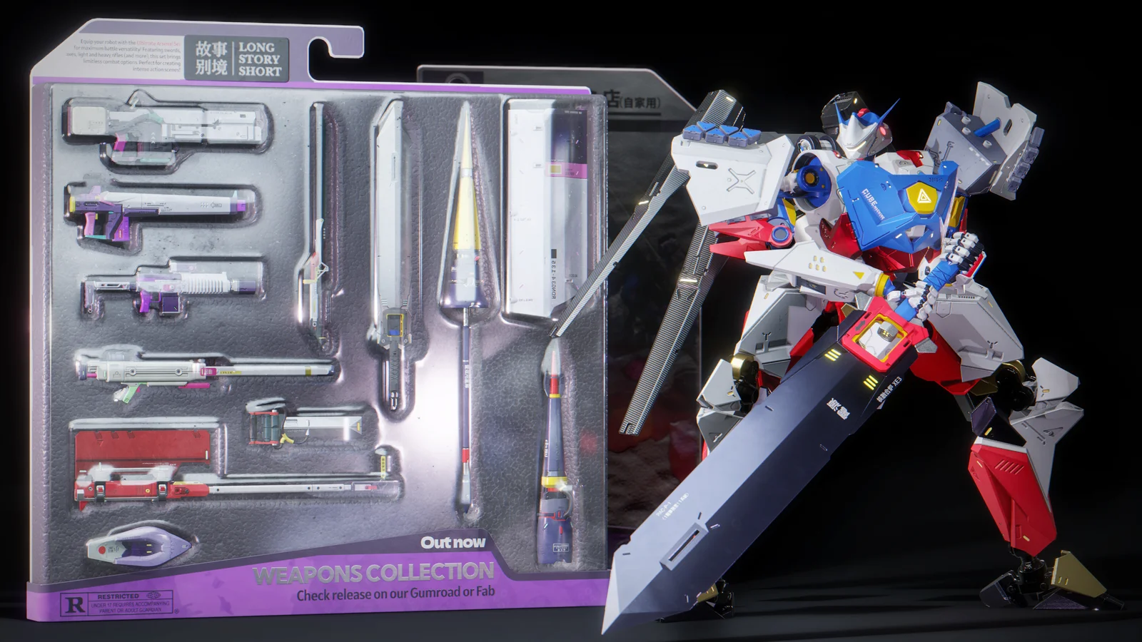 This collection provides a modular kitbash set of 12 unique weapon parts designed for use in Blender, Unreal Engine 5, and ZBrush. In Blender, the assets are integrated into the Asset Browser for a seamless drag-and-drop workflow. The system features a custom rig and allows users to swap parts and textures instantly. It includes 48 pre-configured color options alongside customizable key color settings. A dedicated random mode cycles through 576 possible weapon variations. The package also includes an Insert Multi-Mesh (IMM) brush for ZBrush users.