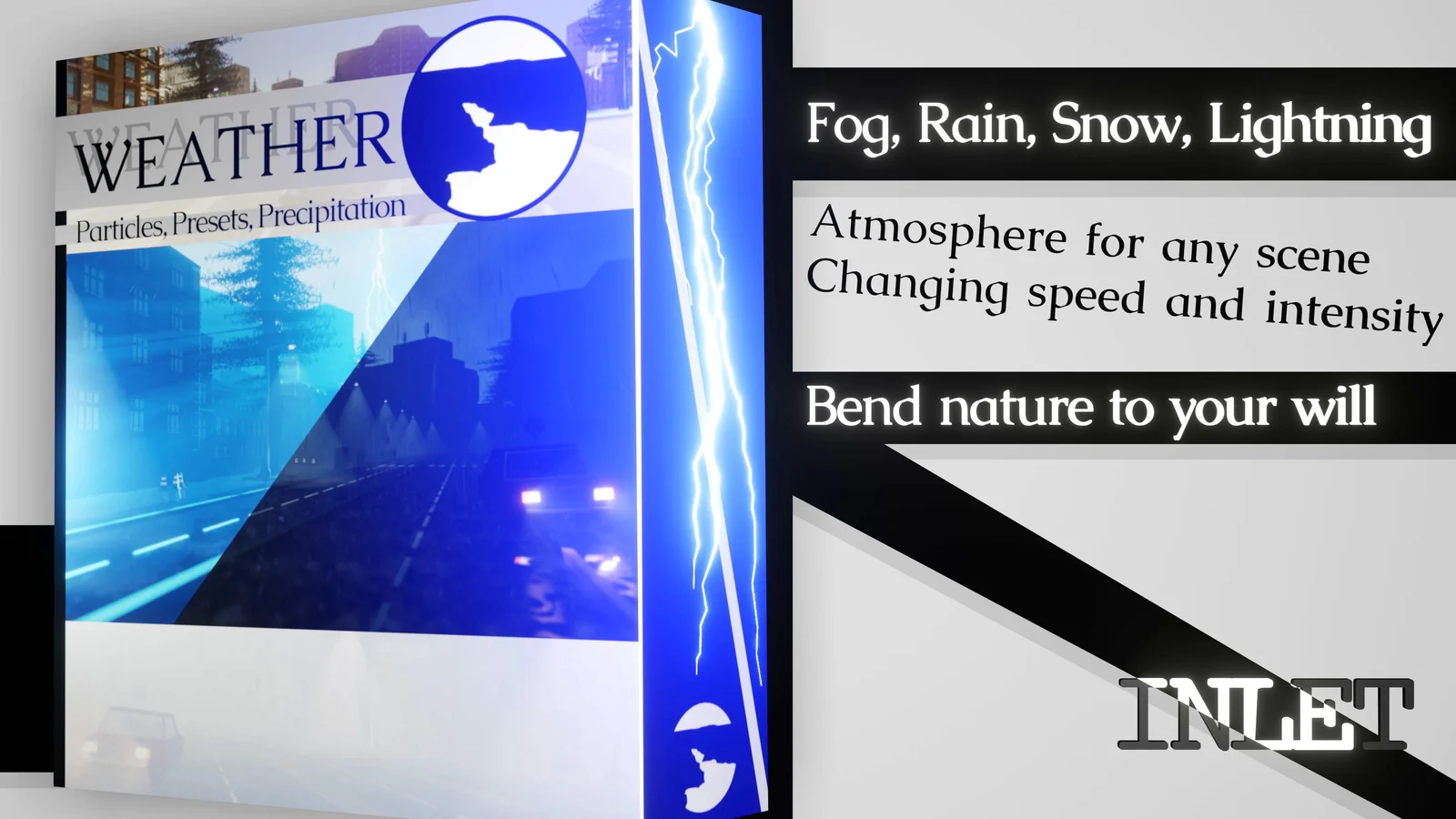 A collection of weather-related particle systems, 3D meshes, and shaders provided in a single .blend file. The package includes setups for heavy and soft snow, light and heavy rain, rain splashing, and lightning strikes.