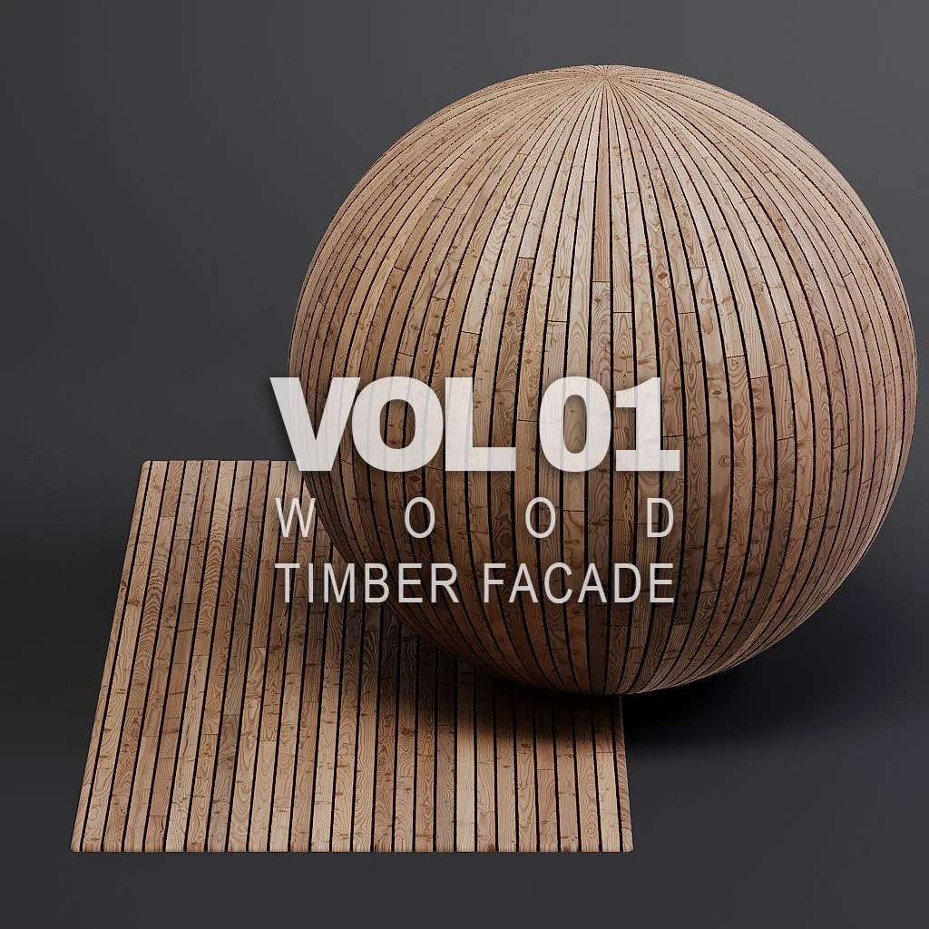 This collection provides 35 distinct wood facade PBR material sets. Each timber structure includes corresponding glossy, bump, and displacement maps for surface detailing. The pack contains approximately 212 individual texture files compatible with any standard PBR rendering workflow.