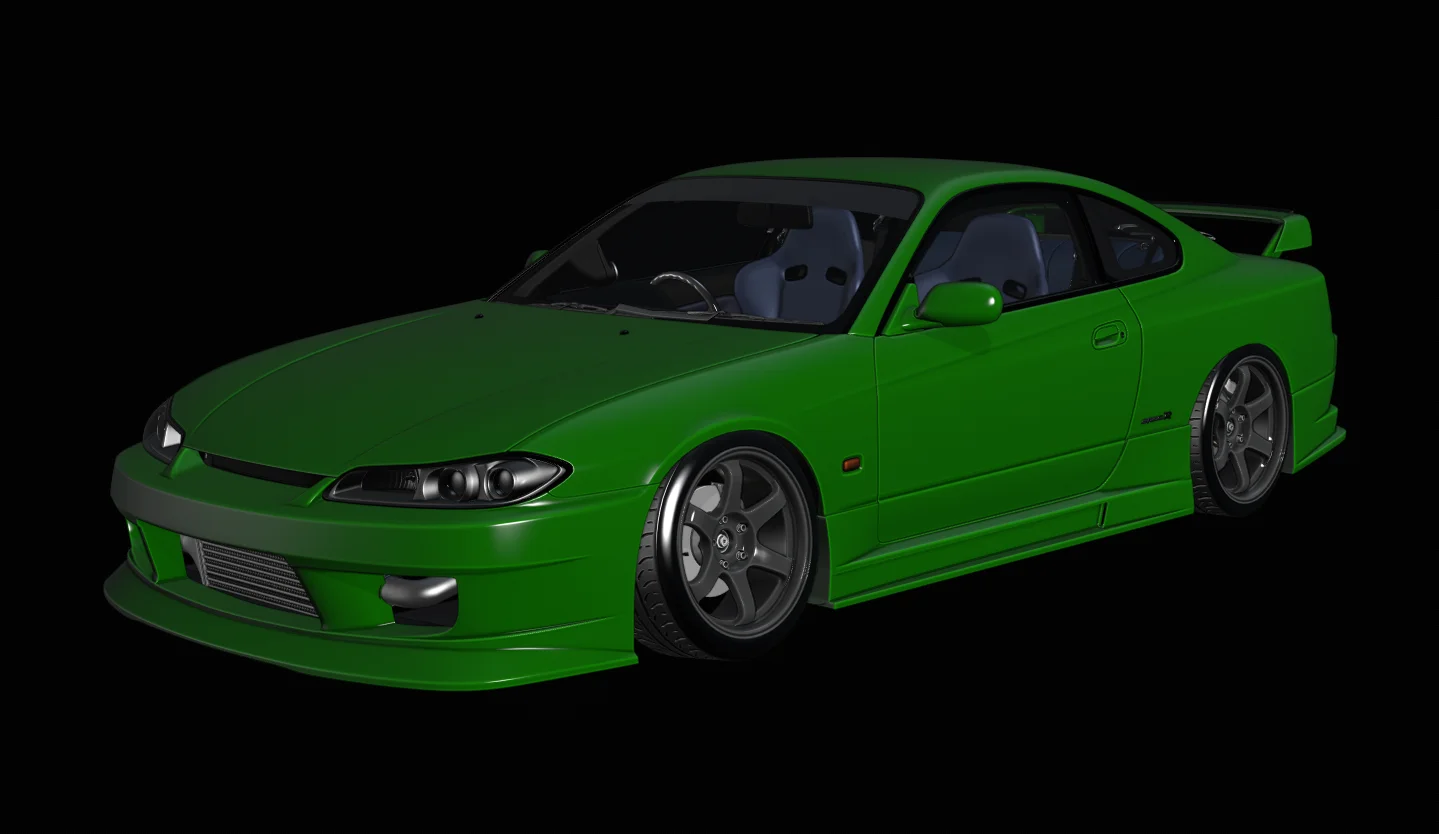A collection of 3D modeled "Rodextyle" body kit variations for the S15 Silvia, inspired by Yasuyuki Kazama. The set includes the 2005 D1GP style, featuring a custom rear wing, front wide fenders, minimal rear widebody arches, and front canards.