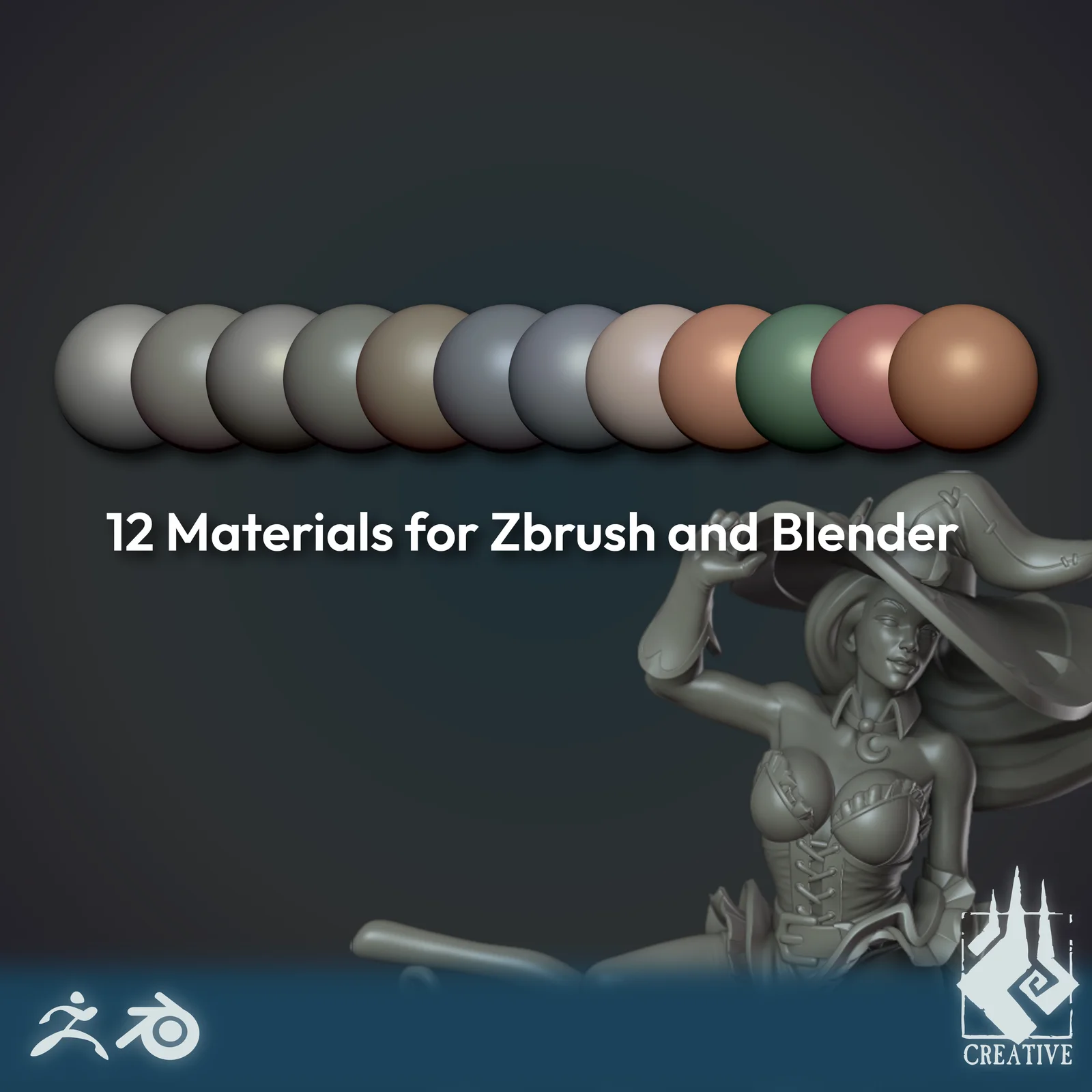 This collection provides 12 matcap materials designed for digital sculpting. While originally created as ZBrush materials, they are fully compatible with Blender's viewport matcap system. The pack includes standard sculpting surfaces such as basic grey, default clay, skin shade, and sculpey, offering various lighting and surfacing styles for visual feedback while shaping models.