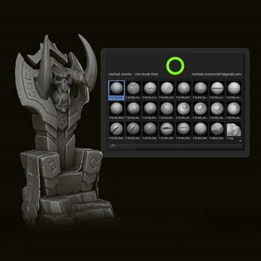 This is a ported collection of the popular ZBrush Orb stylized brushes configured for use in Blender's sculpt mode. The alphas were originally created by environment artist Michael Vicente (Orb) and have been converted for Blender compatibility. The package includes a text guide explaining how to permanently install the brushes into your Blender configuration.